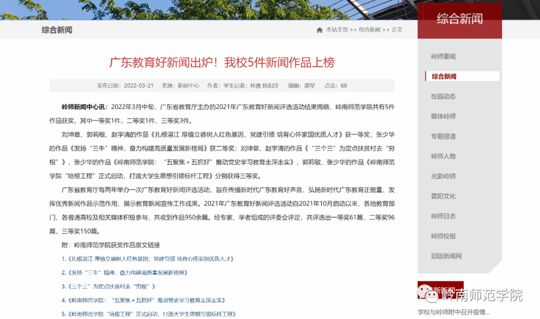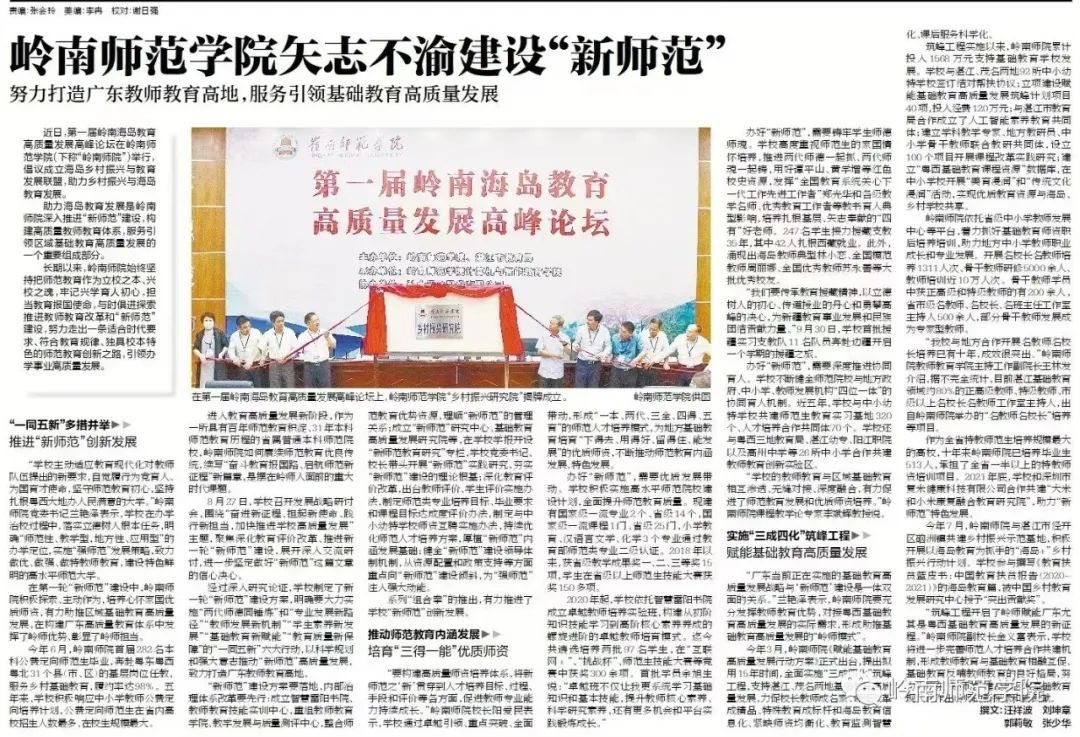 学校新师范建设经验文章《岭南师范学院矢志不渝建设“新师范”》在《南方日报》刊发