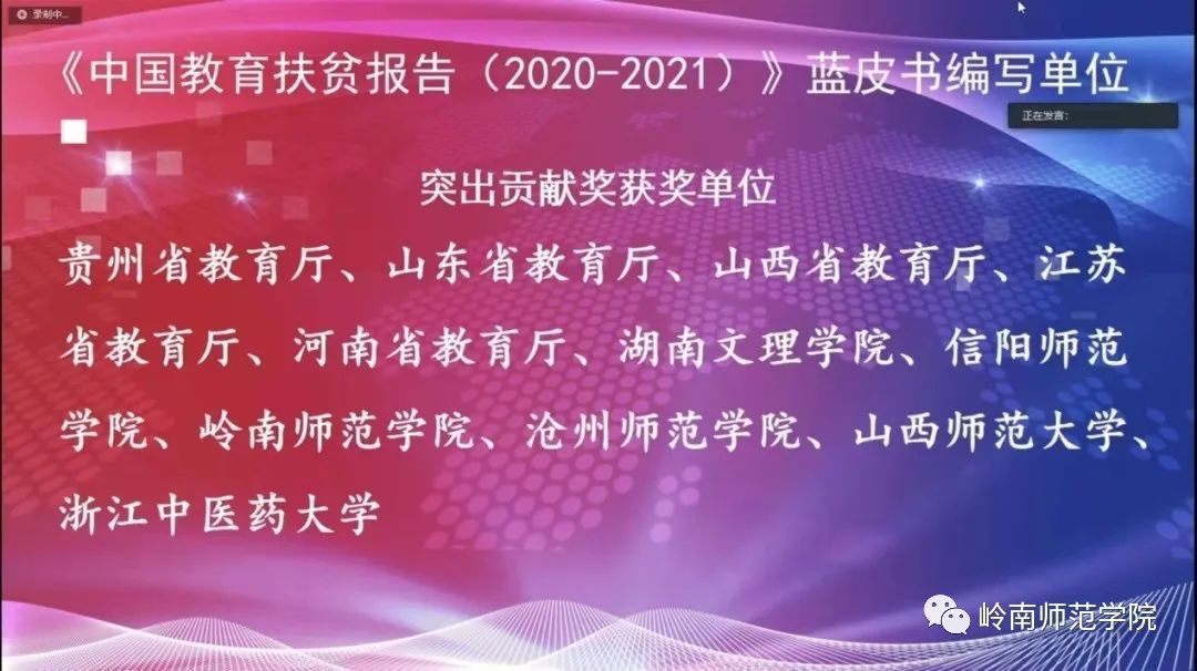 岭南师范学院获《中国教育扶贫报告(2020-2021)》蓝皮书编写突出贡献奖单位