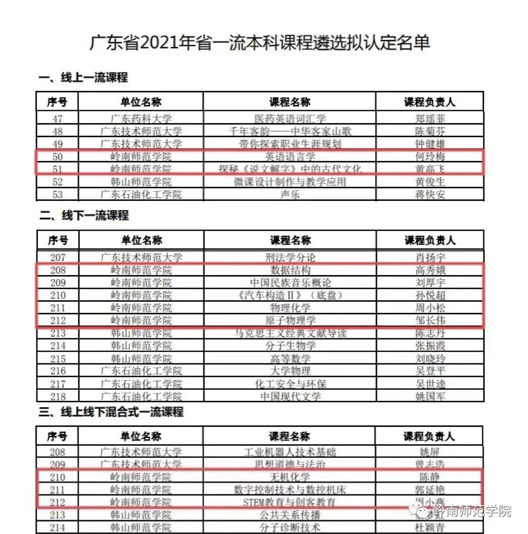 学校坚持深入实施高水平学科培育工程和科学研究攀登工程,全力以赴推进申硕工作,培育建设专业学位硕士点9个。获批建设4个省级科研平台和1个省级科研创新团队。获省技术发明奖二等奖、省科技进步奖二等奖各1项,全国一级协会学会奖2项,授权发明专利41项,专利成果转化12项。马琳和李清华两位教授入选全球前2%顶尖科学家榜单。首个白俄罗斯国立体育大学硕士预科项目落地并顺利推进,“寻味广州湾—中文+粤菜”汉语桥线上团组交流项目获教育部中外语言交流合作中心立项。深入推进“新师范”建设,制定实施“新师范”建设“一同五新”行动方案。小学教育专业通过教育部师范专业二级认证,物理学、体育教育专业接受教育部师范专业二级认证专家组考查。举办特殊教育专业办学十周年庆典。新增高分子材料与工程、智能电网信息工程专业,增设体能训练专业。获批省一流本科专业建设点5个、省级一流本科课程10门、省级精品在线开放课程2门、省级教学成果奖4项、省级职业教育教改项目7项。获省教育厅推荐申报国家级一流本科课程4门、推荐申报国家级教学成果奖2项。