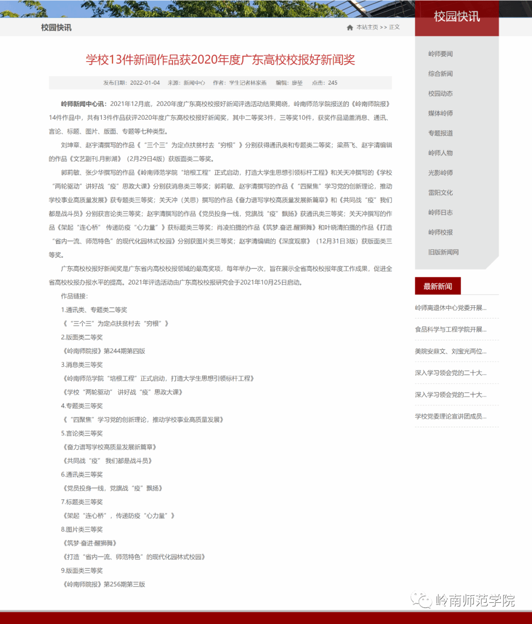 学校13件新闻作品获2020年度广东高校校报好新闻奖