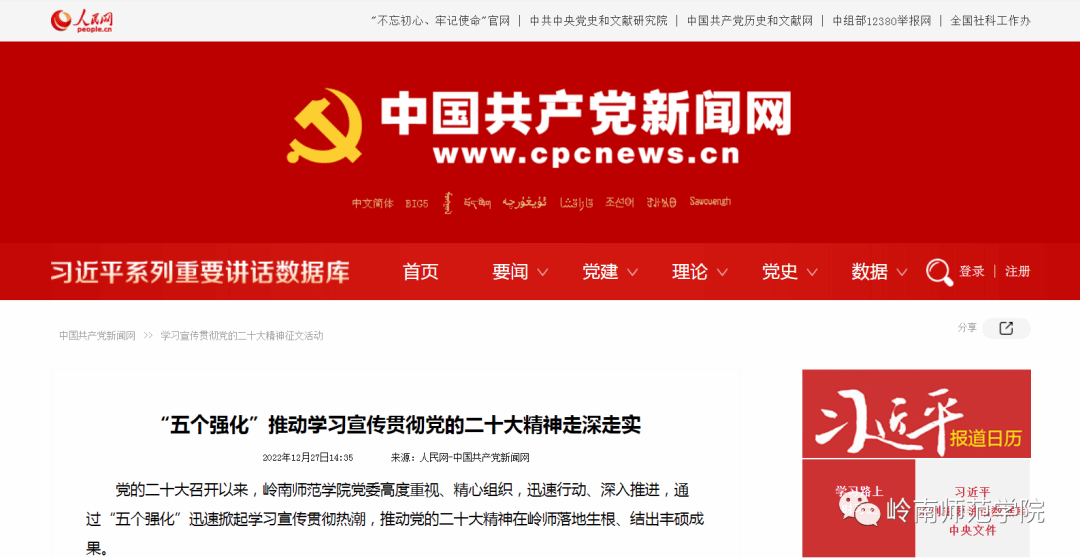 学校《“五个强化”推动学习宣传贯彻党的二十大精神走深走实》经验文章在人民网—中国共产党新闻网全文刊发
