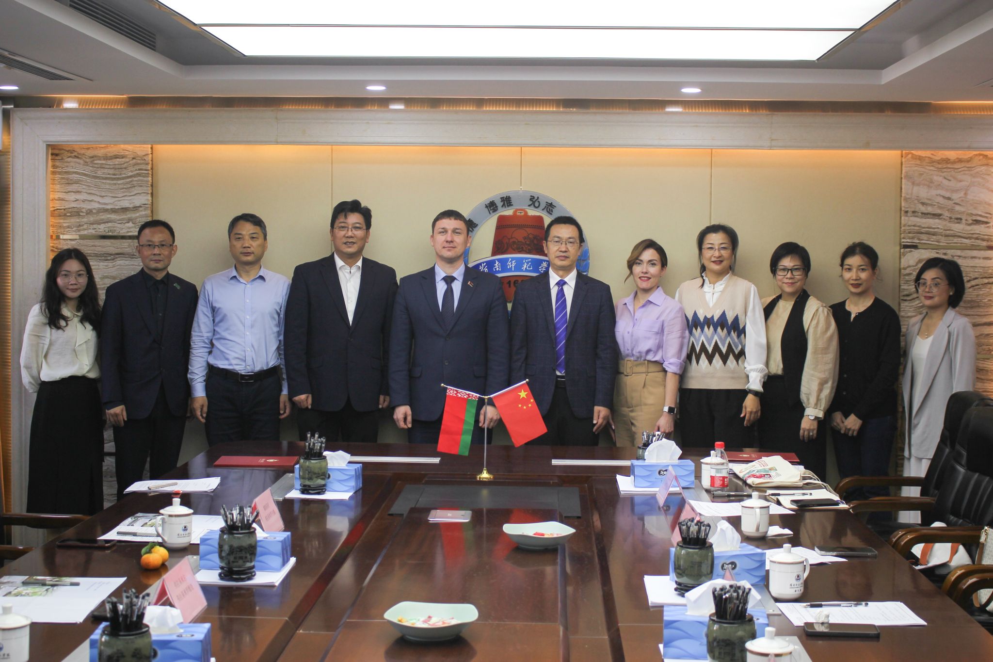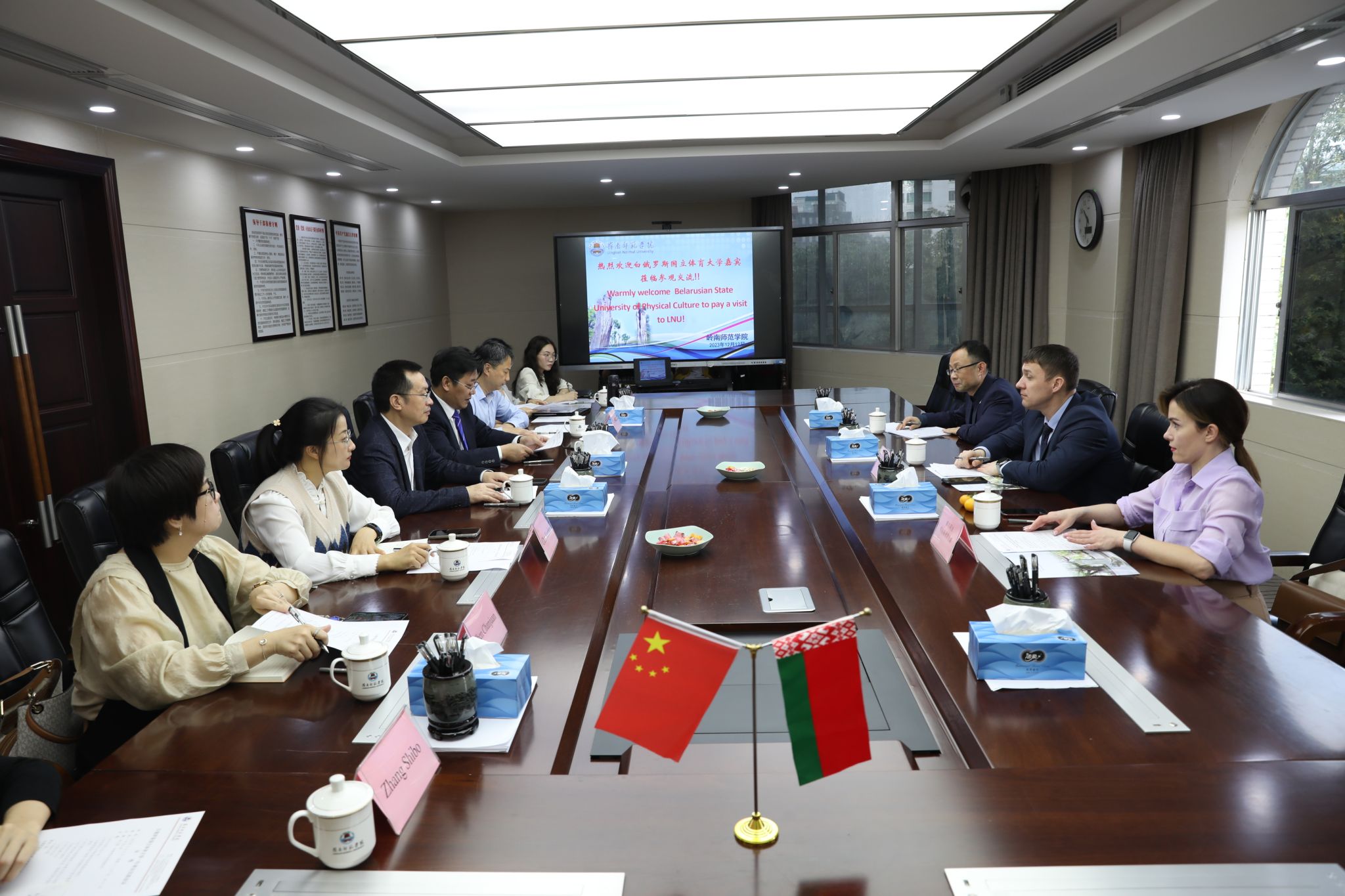 我校国际交流与合作处处长郑志军、文学与传媒学院党委书记陈凯珍、体育科学学院院长王海涛、国际交流与合作处副处长陈婵娟、法政学院中白中心副主任张诗博及国交处相关工作人员参加了交流座谈会。