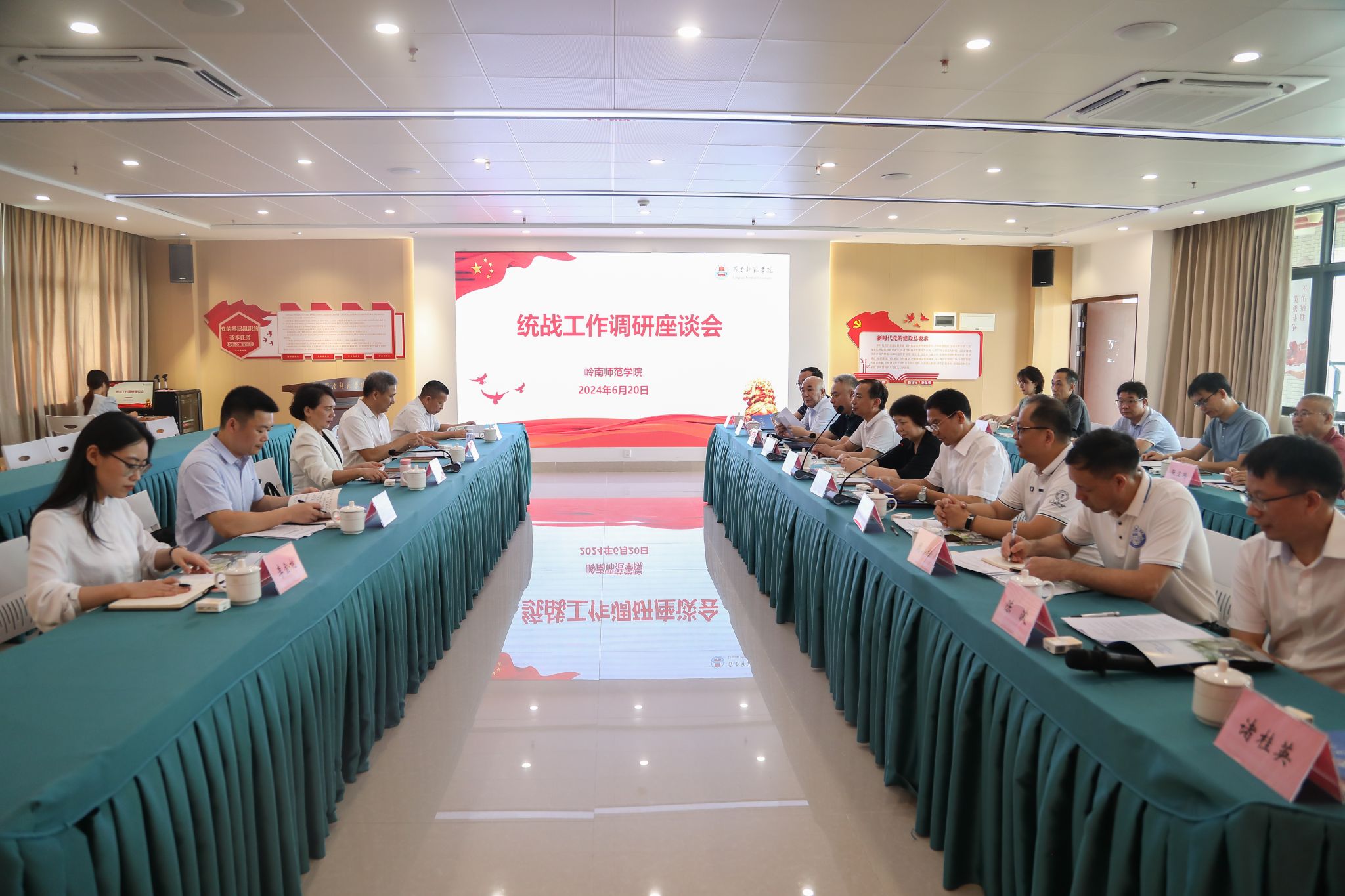湛江市委统战部干部科科长李天飞、党派科科长范结根、办公室副主任李金桃,学校学生工作部林志军、安全保卫处处长李博、学校各民主党派、知识分子联谊会、留学人员联谊会主要负责人和统战部全体干部参加调研。