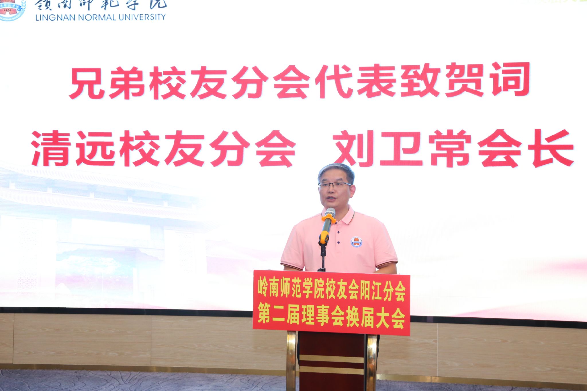 清远校友分会会长刘卫常代表兄弟校友分会致贺词