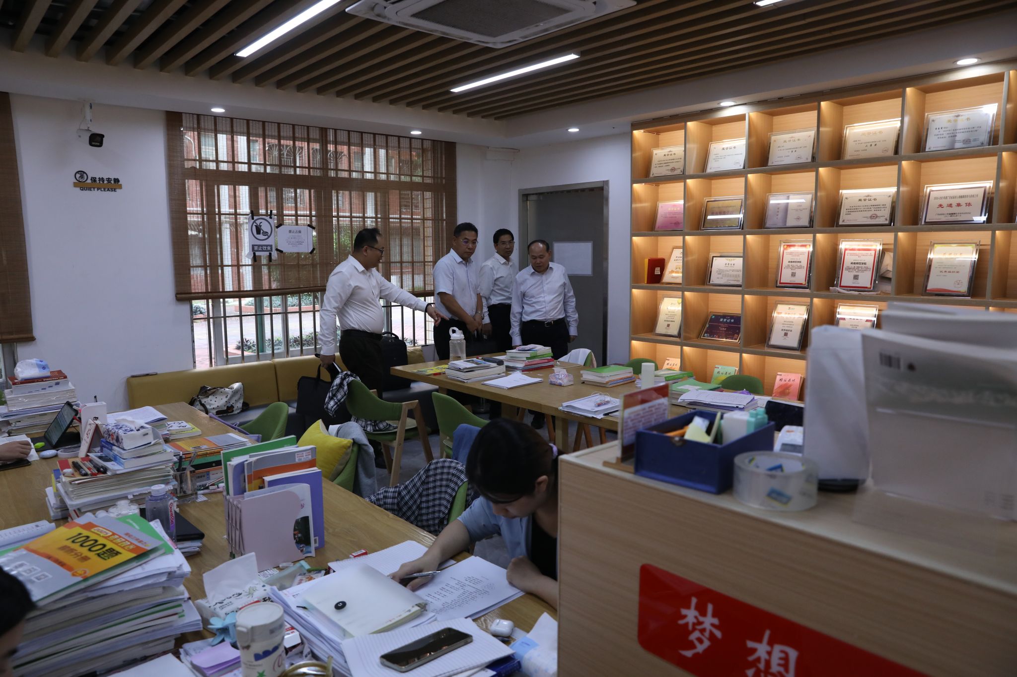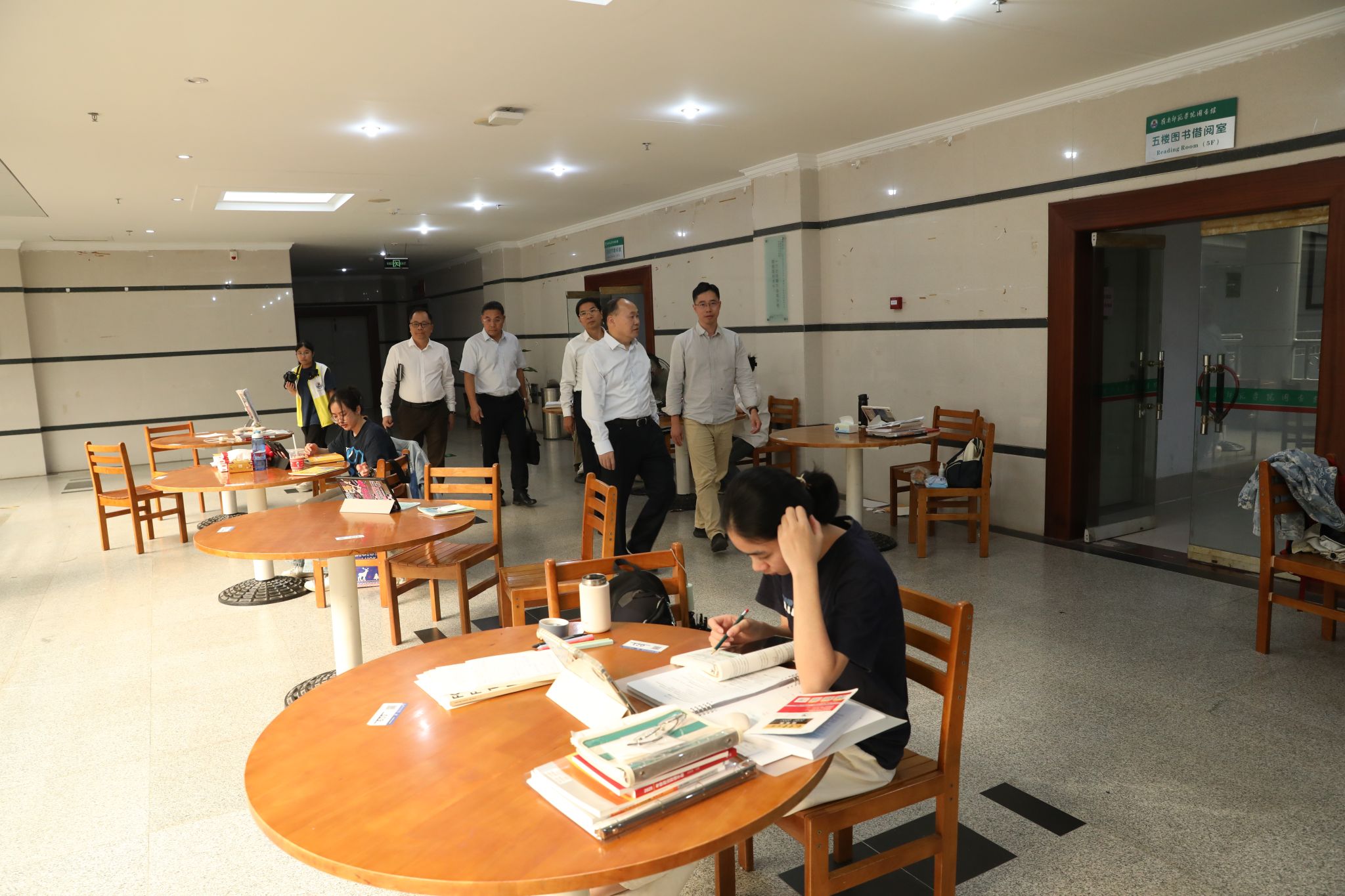 “图书馆为考研学生专门准备了多少座位?”“晚上同学们考研备考学习到几点?”阳爱民、林晓敏带队走进学校图书馆二楼、三楼等考研学习场所,边走边问图书馆为考研学生服务情况以及学生学习情况,现场查看考研学生学习环境等。