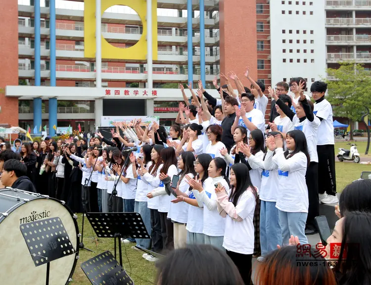 唱起校歌《师道之光》,学子们欢呼自豪