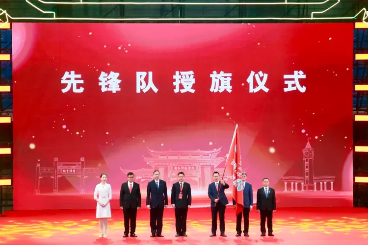 大上还揭牌成立了未来教师教育研究院、湛江市社会工作研究院、人工智能应用创新实训中心,“两院一中心”将为地方经济社会发展注入新活力;该校还与10家单位现场签署了校企战略合作框架协议,推动产学研用深度融合;副市长吴国雄向岭师赋能湛江基础教育高质量发展先锋队授旗。师生代表为学校师范教育120周年献词,送上深情祝福。