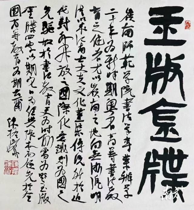 中国文联副主席、西泠印社副社长兼秘书长陈振濂为展览题写了“尚美薪传”展标和“玉版金牒”题贺,认为岭南师范学院书法学专业为“新时期粤省高等书法教育之健者”。展览得到了广东省高等教育学会书法教育专业委员会的大力支持,兄弟院校同行专家、书法专业负责人惠赐佳作。