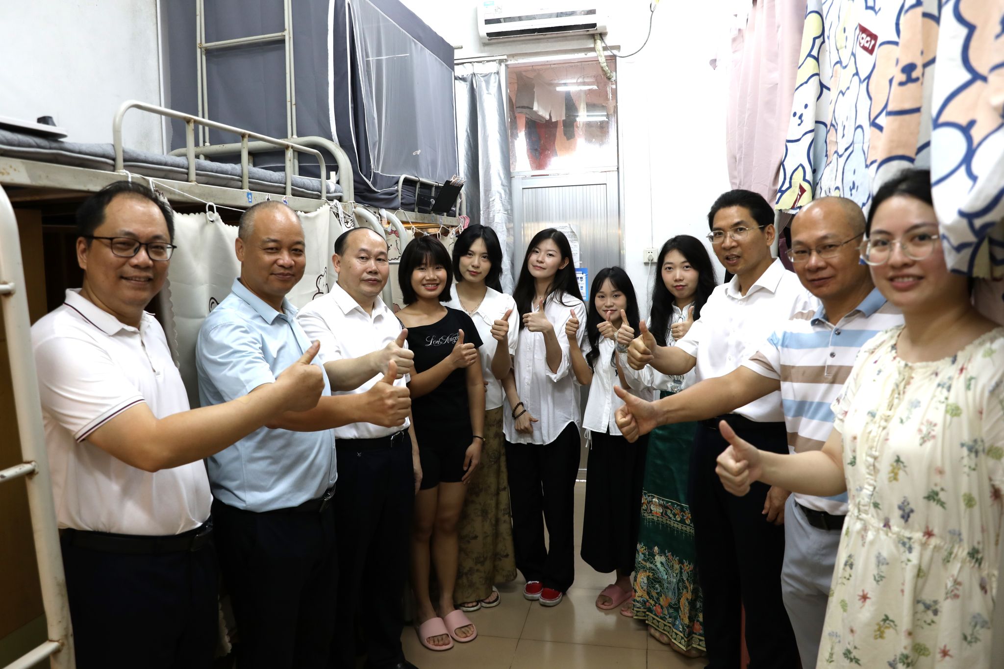 阳爱民一行与2025届毕业生宿舍的同学们合影