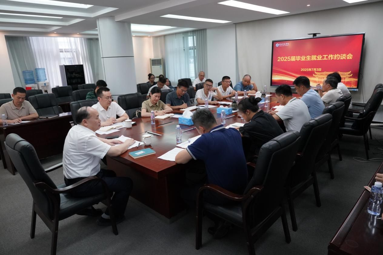为全力冲刺2025届毕业生就业工作关键期,7月3日下午,学习在2号会议室召开毕业生就业工作专题约谈会。校长阳爱民出席会议并作攻坚部署,副校长金义富主持会议并通报当前就业进展,相关二级学院党委书记、副书记及招生与就业处全体人员参加会议。