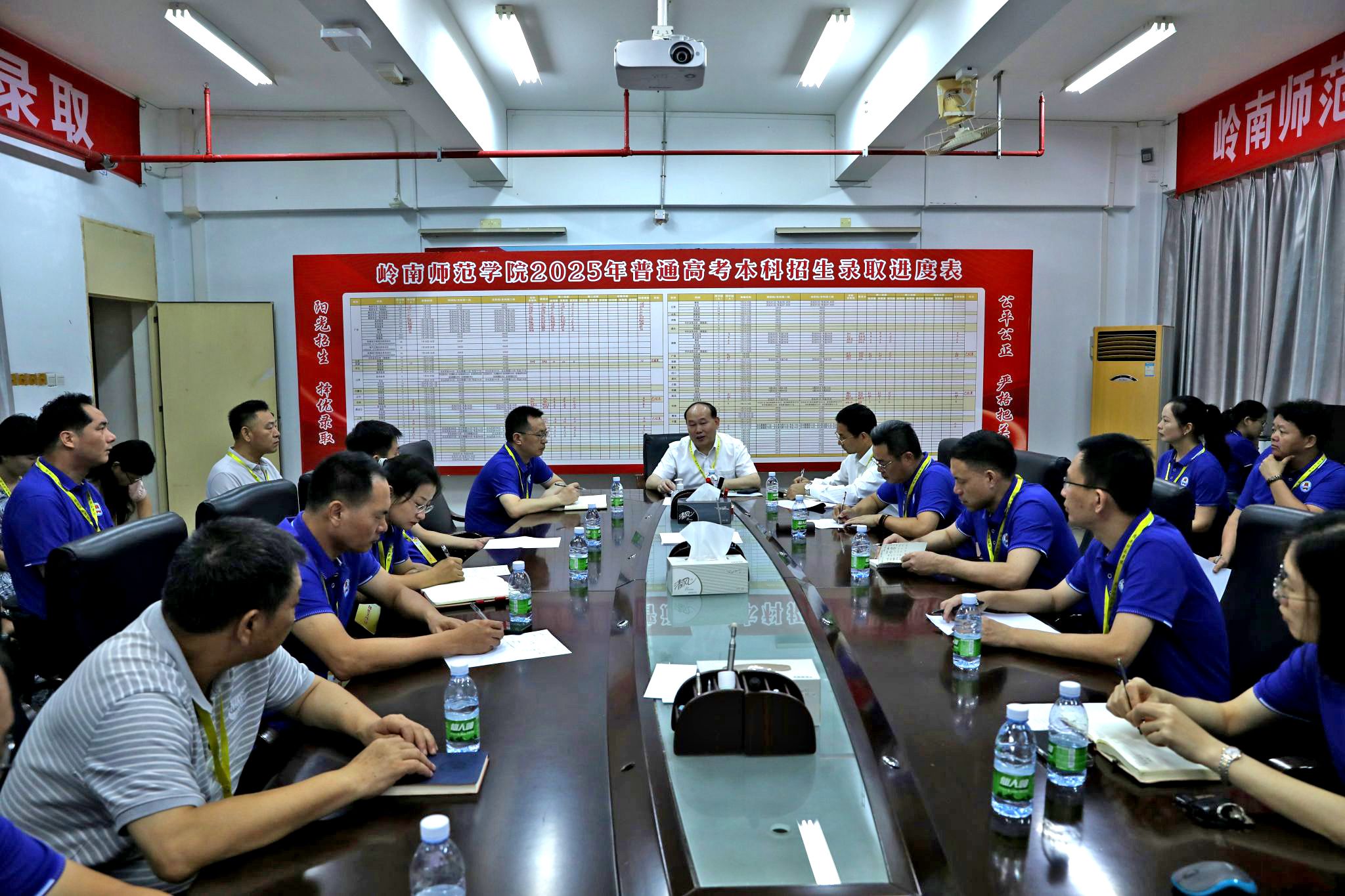 岭师新闻中心讯:招生人数持续破万位居全省公办本科院校首位、一次性满档、公费师范生依然受追捧、高分层次考生人数大增、第一专业志愿满足率持续提升……7月19日,岭南师范学院2025年高考招生录取工作会议在综合楼204室召开,校长阳爱民、党委副书记林晓敏、副校长金义富出席会议并到学校招生现场指导录取工作。