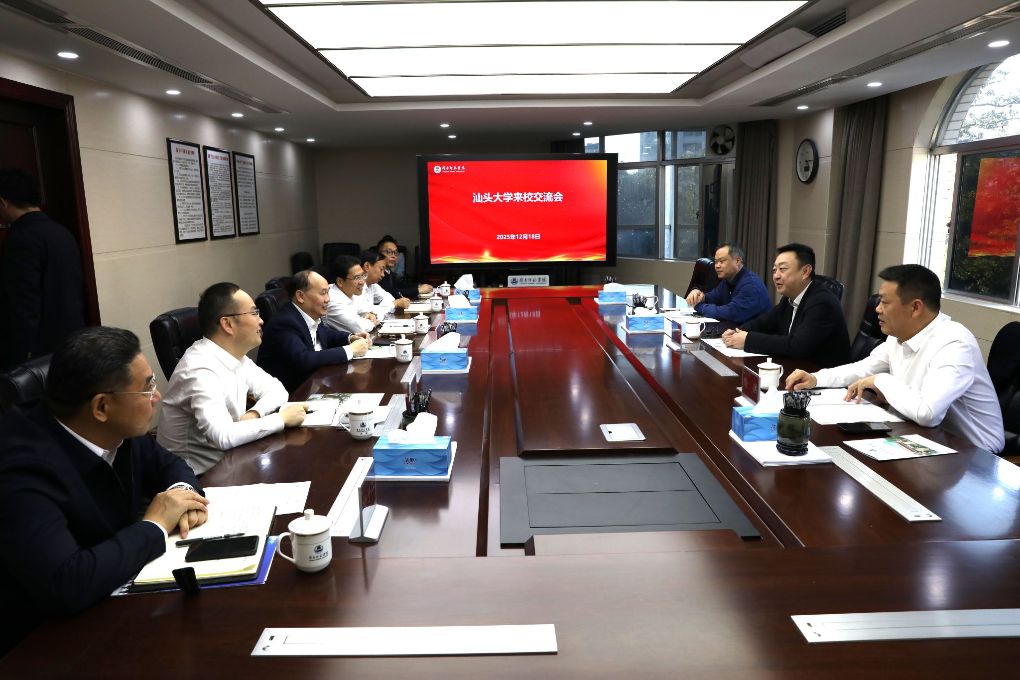 阳爱民表示,汕头大学作为粤东高等教育的标杆,在党建创新、人才培养、学科建设等方面积累了诸多宝贵经验,一直是我们学习的榜样。此次唐锐书记一行专程而来,聚焦党建业务融合、年轻干部培养、“十五五”规划等关键课题传经送宝,希望能学习到汕头大学更多办学经验,进一步打通交流渠道、深化合作共识,在党建共建、人才互访、资源共享等方面凝聚更多合力,共同书写粤东粤西高等教育协同发展新篇章。