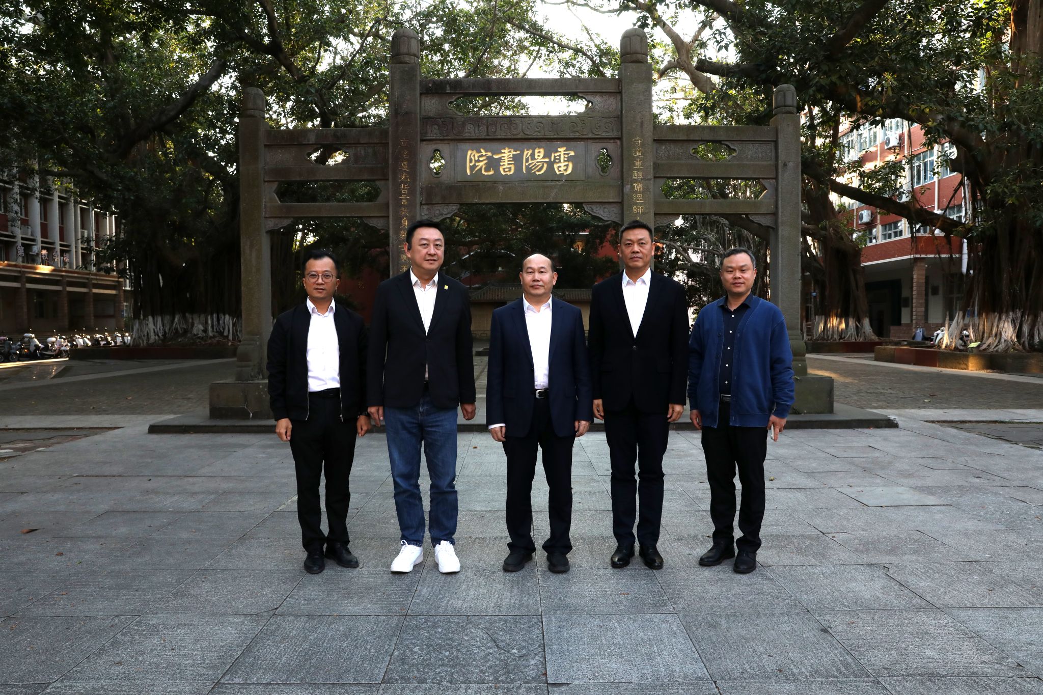 唐锐一行参观了学校的古榕广场、谭平山纪念园、百年师范纪念塔等校园文化景点,以及省特教重点实验室、生物科普馆等场所的建设情况。