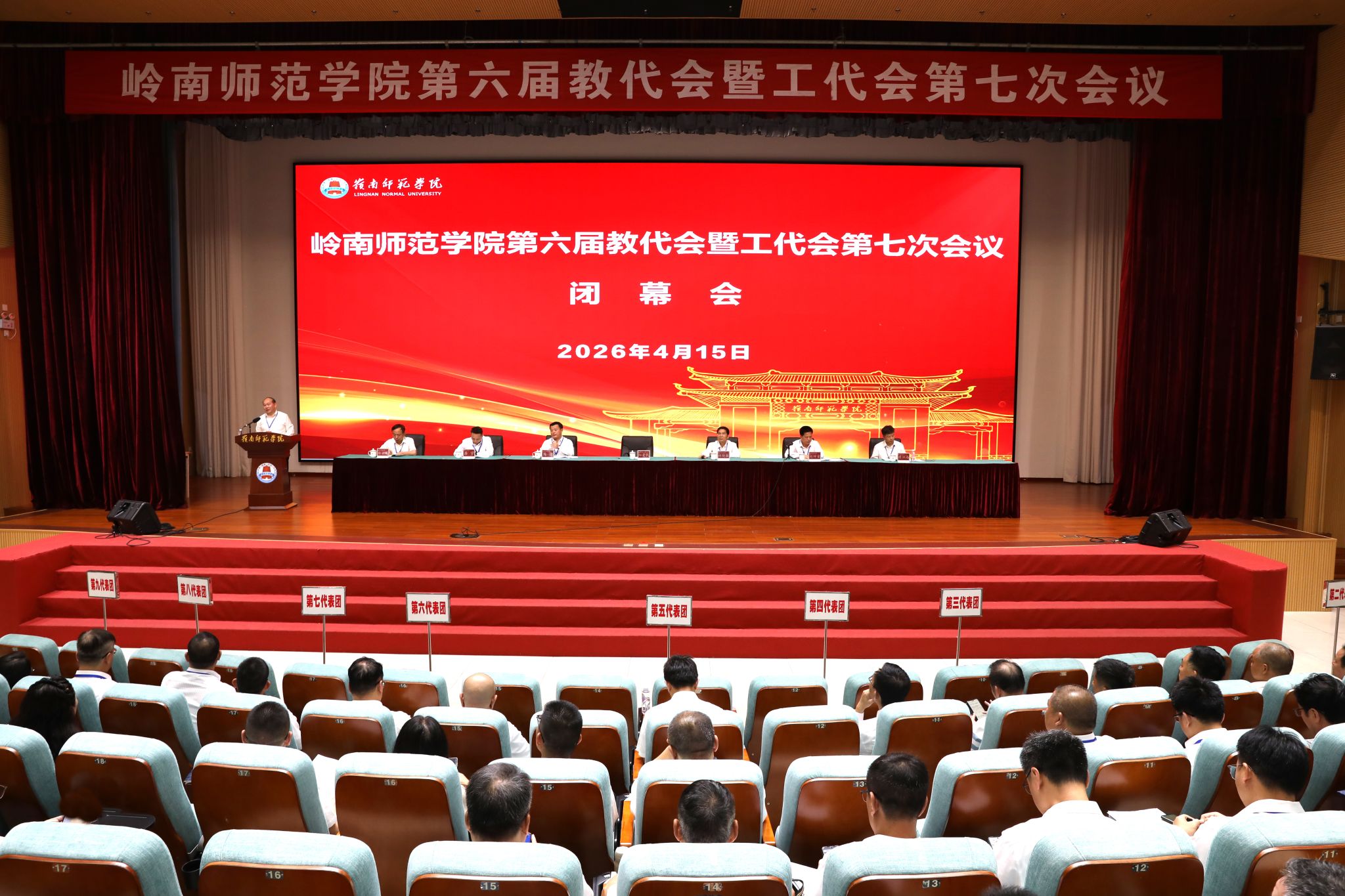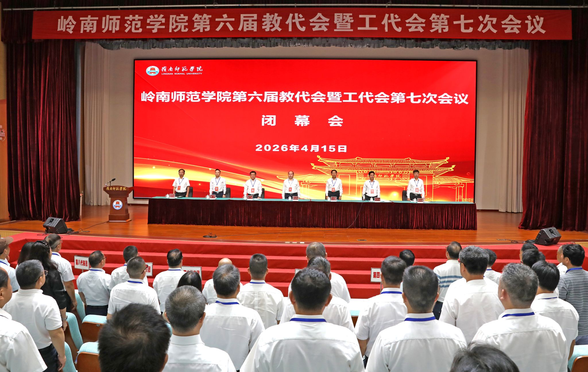 岭师新闻中心讯:4月15日下午,学校第六届教代会暨工代会第七次会议闭幕会在音乐厅召开。会议表决通过了《关于学校工作报告的决议(草案)》《关于教代会工会工作报告的决议(草案)》《关于岭南师范学院“十五五”发展规划(2026—2030年)(草案)的决议(草案)》《关于财务工作报告的决议(草案)》。学校党委书记阳爱民出席并作总结讲话,学校在校校领导、华师帮扶队队长、正式代表、特邀代表出席会议,学校副校长刘坤章主持闭幕式。