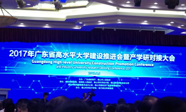 2017年广东省高水平大学建设推进会暨产学研对接大会于6月3日在佛山召开。本次大会由广东省教育厅、佛山市人民政府主办,广东40多所高校以及相关企业、研发机构等五百多名代表参加会议。我校罗海鸥书记带领黄崴副校长、科研处陈华杰副处长、王雁科长以及参展专家代表黄赞博士等参加会议。