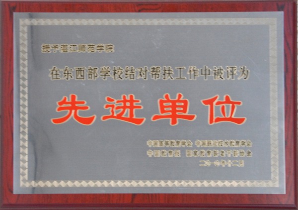 湛师新闻网1月12日讯 在深圳市最近召开的“全国第十次西部地区教育顾问工作会议”上,我校荣获由中国高等教育学会、中国职业技术教育学会、中国教育报、国家教育部老干部协会联合颁发的全国“东西部学校结对帮扶工作先进单位”光荣称号。据悉,获此荣誉全国共有78家单位,其中高校仅有7家。我校是广东省唯一获此荣誉的高校。