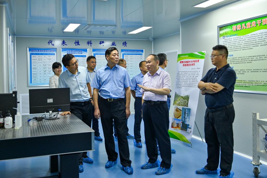 校长阳爱民陪同刘代德一行参观光电材料与器件实验室