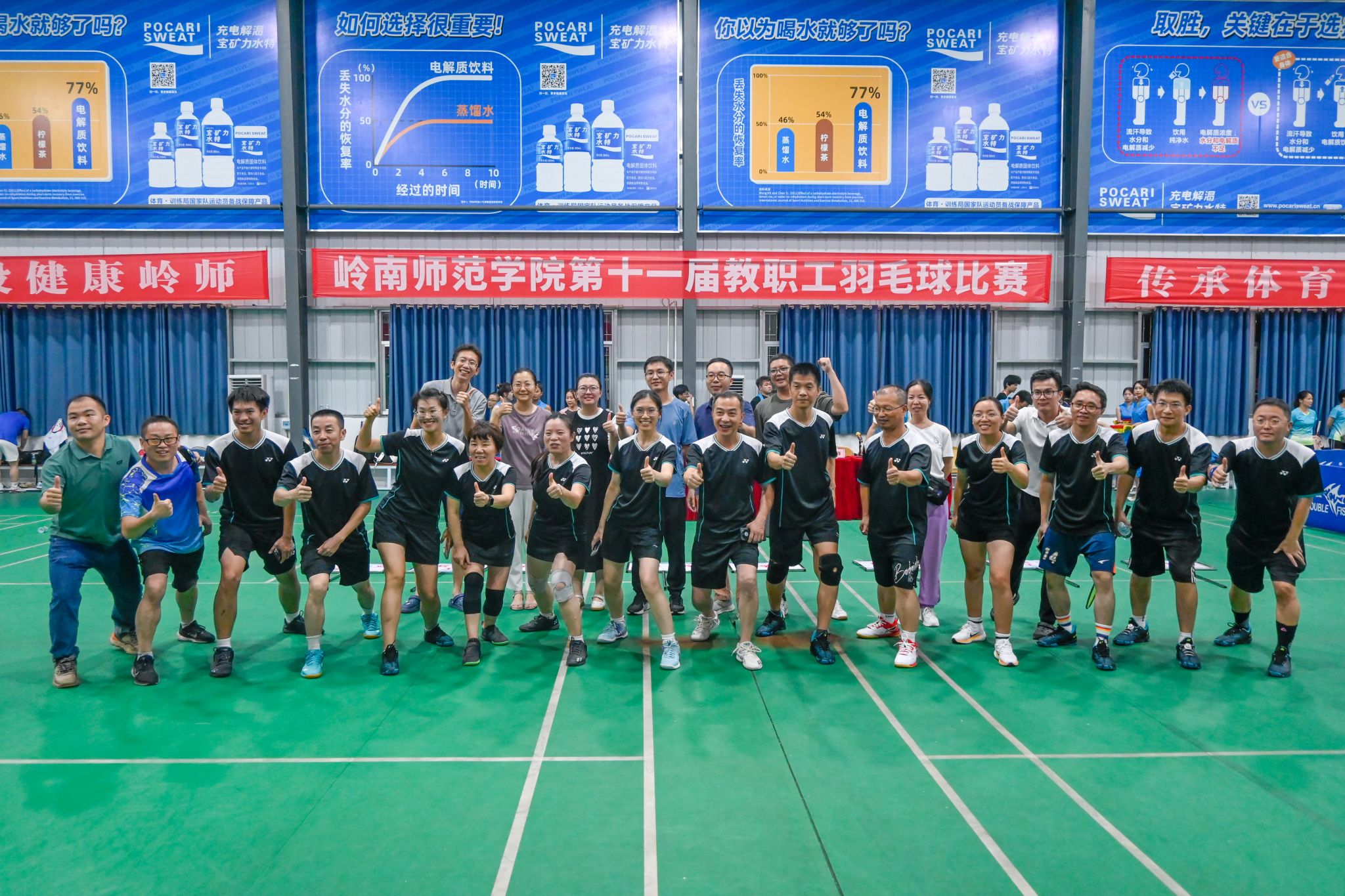 岭师新闻中心讯:“好球!”“加油!”……6月16日,学校第十一届教职工羽毛球比赛在尚武馆羽毛球训练馆圆满收官。来自26支代表队的400多名参赛选手参加了比赛,历经6个比赛日激烈的角逐,机电工程学院代表队夺得本届比赛冠军。商学院代表队、体育科学学院代表队分别获得亚军、季军。机关二、后勤中心代表队、机关一、计算机与智能教育学院、马克思主义学院代表队则位列比赛第四至第八名。校长阳爱民亲临赛场,为比赛队伍加油鼓劲,学校副校长苏古发、学校党委常委、宣传部部长刘坤章、华师帮扶队队长卢勃等领导,参加了比赛。