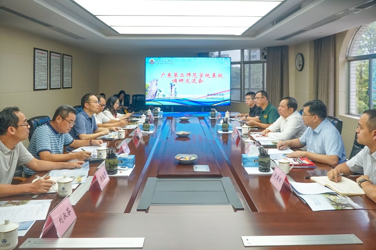 岭师新闻中心讯:9月26日下午,广东第二师范学院党委常委、副校长马骏一行来校调研交流,双方就学生工作、招生就业等内容在一号会议室座谈交流。学校党委常委、副校长吴涛主持会议。
