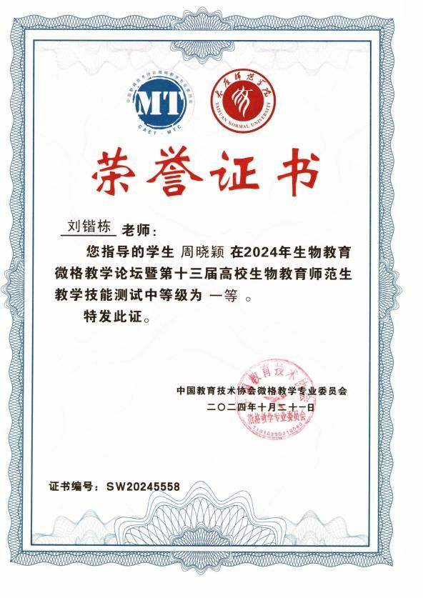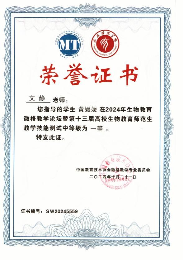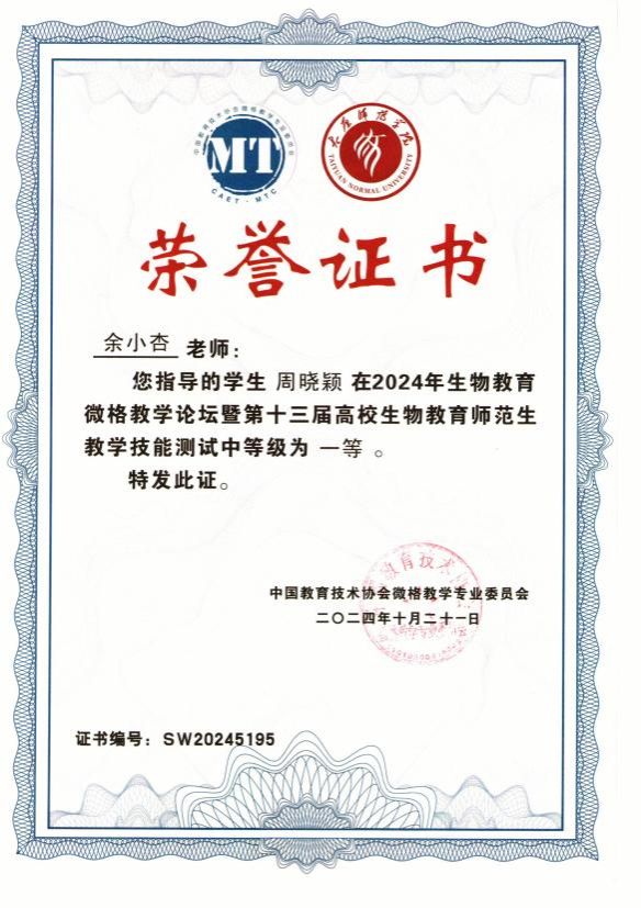 学院由院长刘锴栋、教学论教师余小杏、教学论教师文静共同指导的生物科学(师范)专业周晓颖和黄媛媛同学参加了此次测试。这两位同学展现出了深厚的专业素养,她们的教学设计新颖独特,授课技能娴熟流畅,答辩表现严谨沉稳,得到了评委老师们的高度赞扬。在教学设计评审、模拟课堂教学以及评委提问这三个充满挑战的环节中,他们一路过关斩将,脱颖而出。