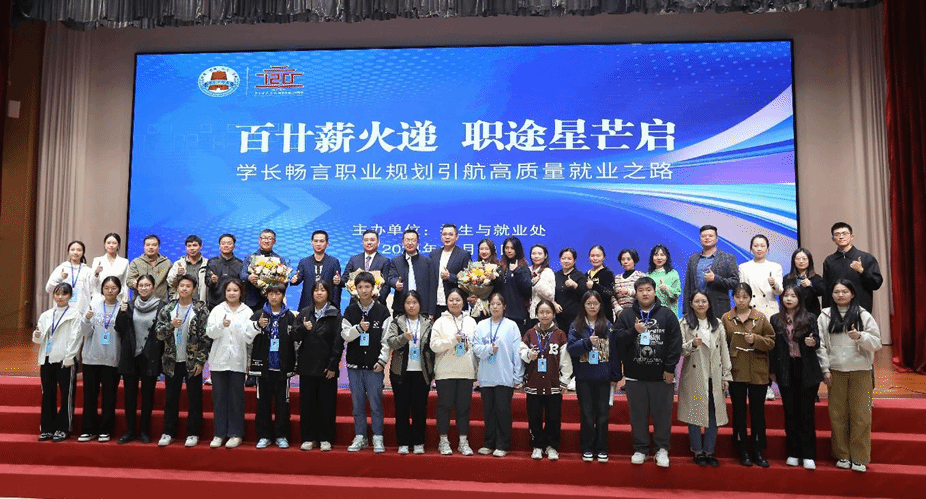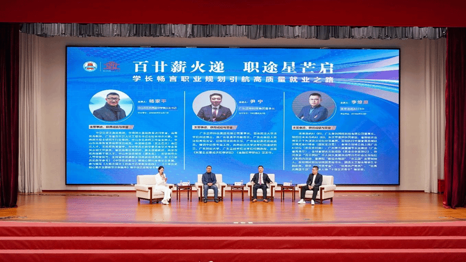 岭师新闻中心讯:12月13日晚,主题为“百廿薪火递,职途星芒启:学长畅言职业规划引航高质量就业之路”的校友讲座在学校寸金校区音乐厅隆重举行。学校副校长金义富出席并致辞,招生与就业处副处长周明俊,以及各二级学院教师代表和学生代表500余人参加了本次讲座。此次活动邀请广东正烨科技集团董事长、学校1992届政史2班优秀校友尹宁,中山市东升高级中学党总支书记、学校2000届历史1班的优秀校友杨家平,以及未来岛屿AI CEO、2016届音本3班的优秀校友李燎返校,分享他们职业历程中宝贵经验与人生感悟。