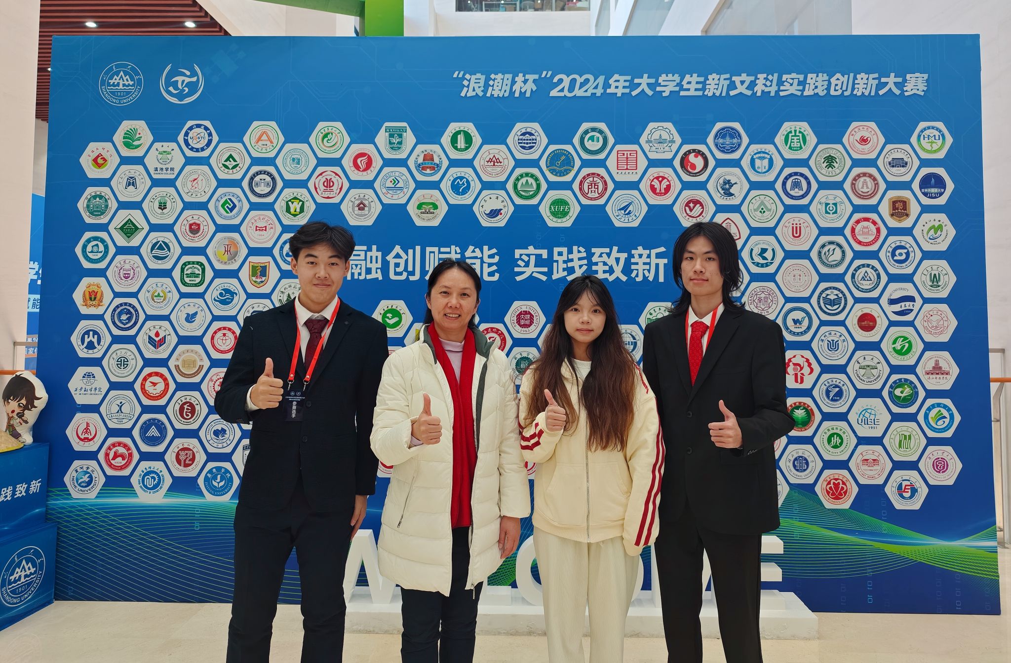 经过前期的精心筹备和校赛选拔,学校有8支队伍脱颖而出,成功晋级全国决赛。通过国赛网评,来自法政学院的《蒲香蒲乡——创新雷州蒲织非遗生态智慧的活化传承新模式》与商学院的《当“雷文化”遇见元宇宙:开启雷州文旅数字化新模式》项目挺进现场决赛,指导老师沈晶照和李妍亲自带队奔赴山东济南参赛,选手们克服寒冷天气,自信昂扬地介绍项目,双双荣获银奖,充分展示了他们的专业素养和创新精神。