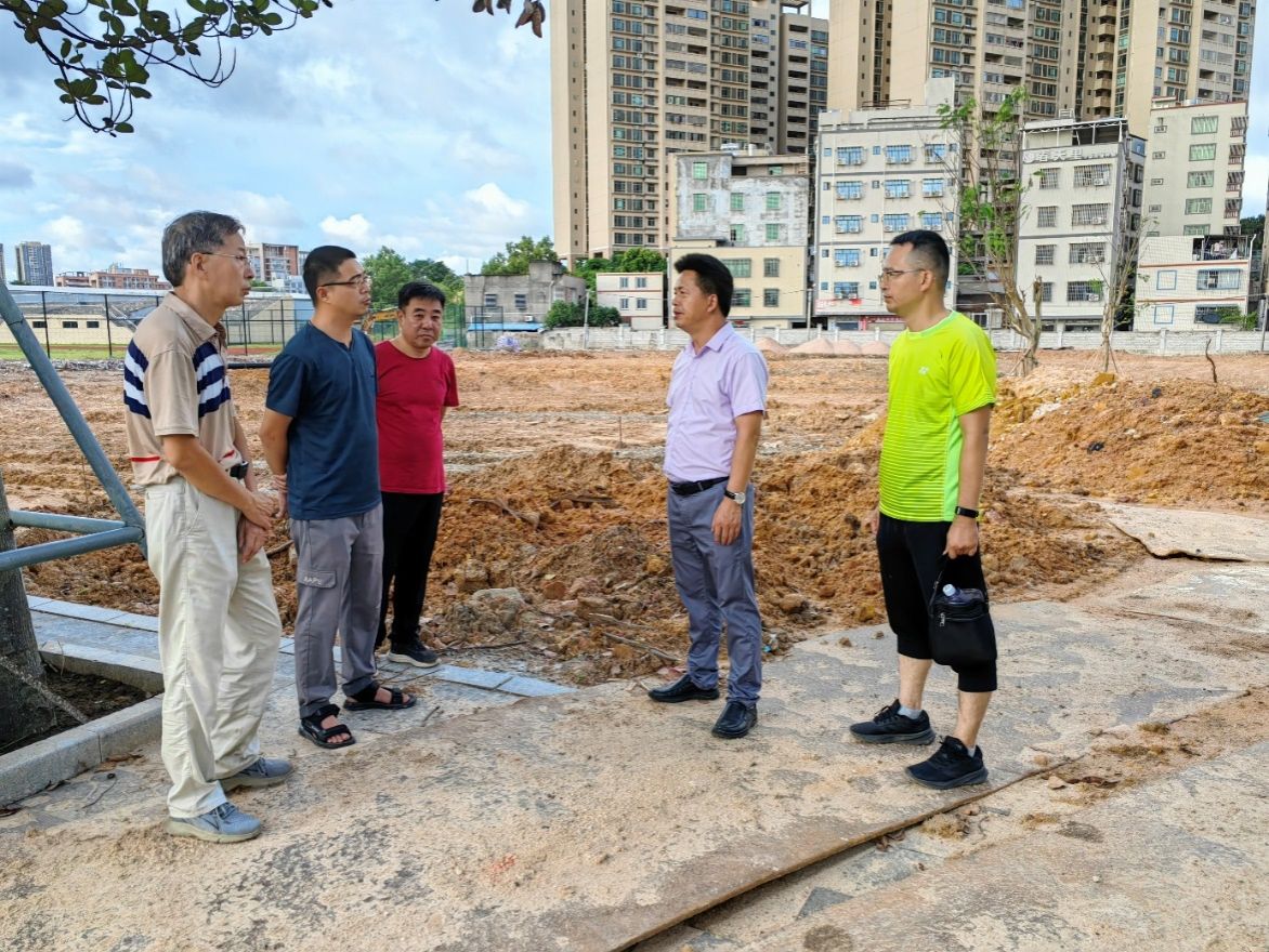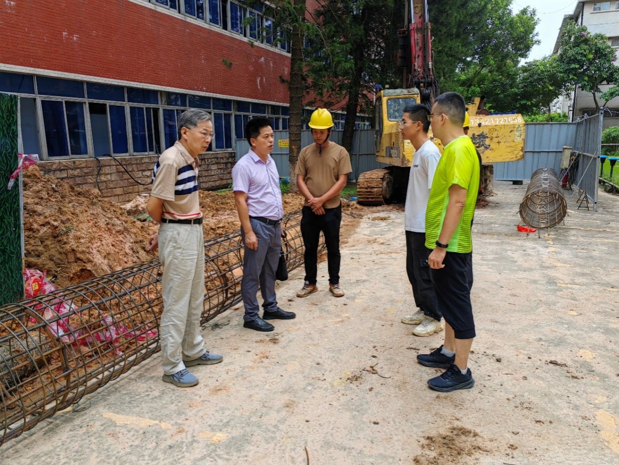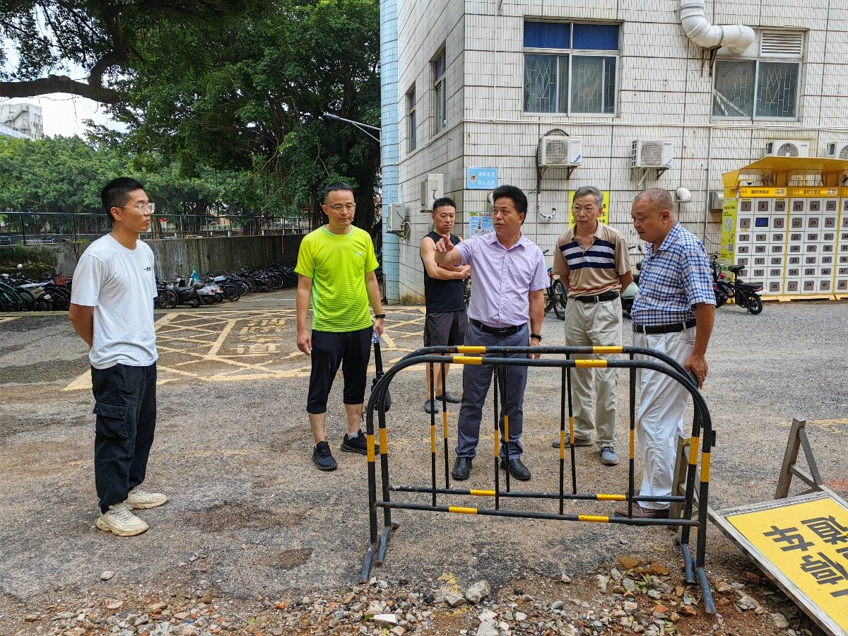 在各项目现场,刘坤章仔细听取施工单位关于工程进度、质量管控、安全措施落实情况的汇报,查看施工细节并针对性提要求。他指出,加建电梯项目关乎师生出行,需压实责任、加快破解施工难题,协调参建方形成合力,严守质量底线确保按时交付;燕岭阁转换层拆除工程要做好墙面修补抹灰优化与积水疏导,兼顾验收标准与住户需求;博雅苑210栋修缮项目需锚定“开学前完工”目标,加快大门、消防通道建设等收尾工作,保障尽快达标使用。