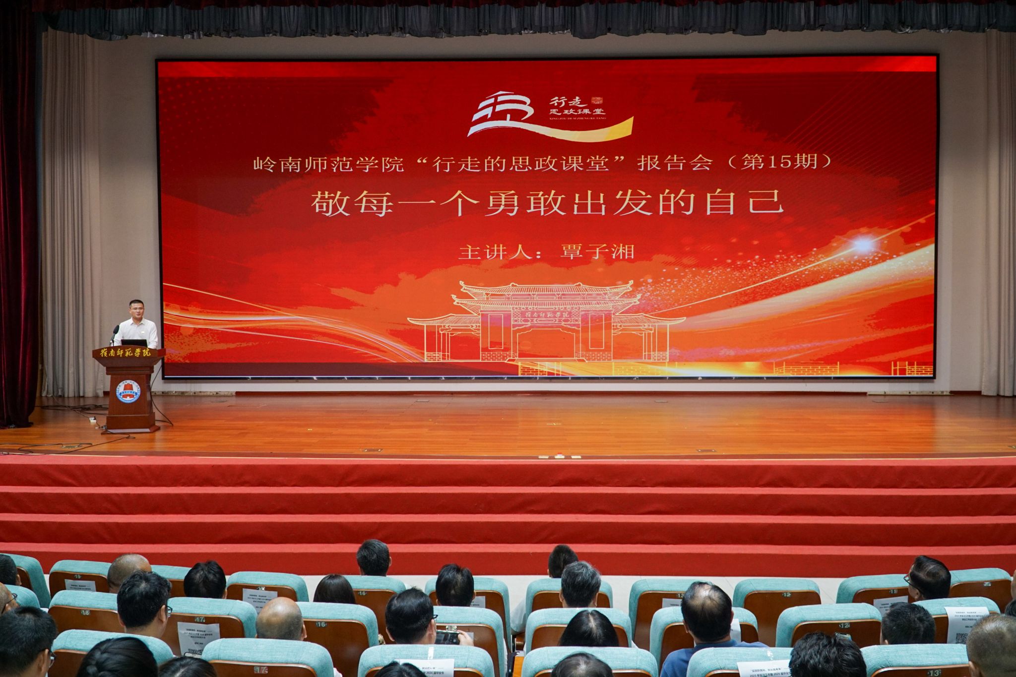 援疆支教队队长何林逸同学动情讲述在新疆支教期间的实践收获与团队成果,体现岭师学子服务边疆、奉献国家的责任担当。
