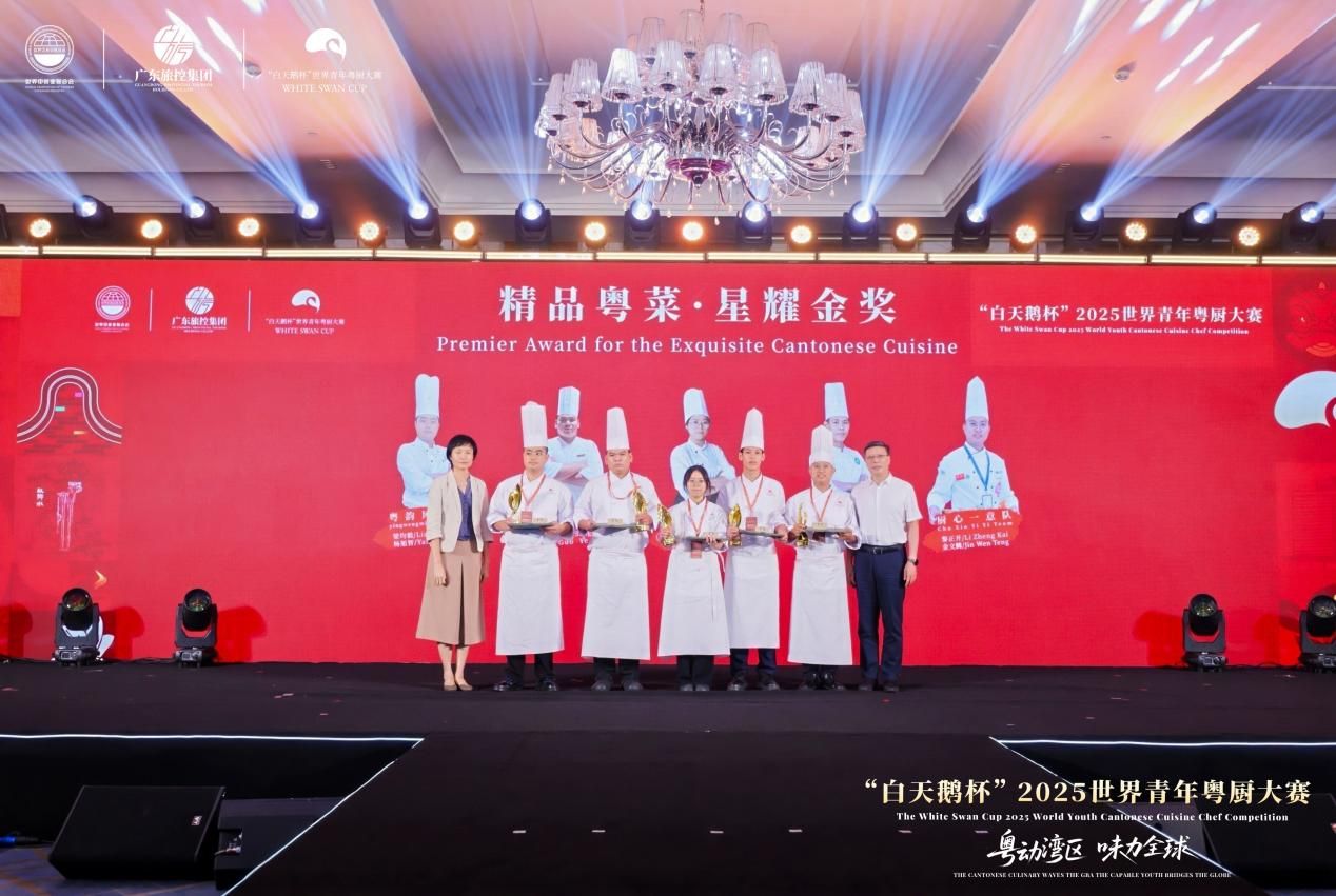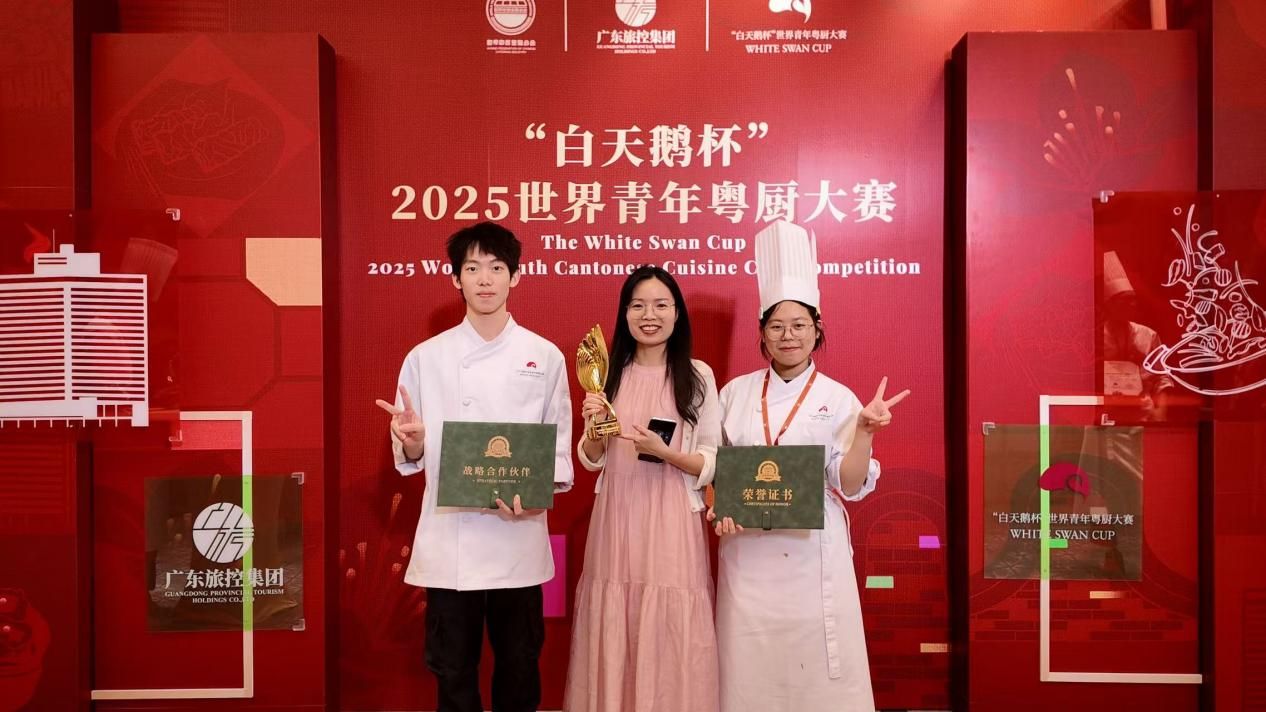 9月16日,2025年“白天鹅杯”世界青年粤厨大赛总决赛在广州白天鹅宾馆举行。得益于食品院领导的大力支持、烹饪与营养教育系主任马景球的精心组织及各位老师的协助,张小琼老师指导的两位学子林叔玲、邓开文表现突出,在全球近120支参赛队伍中脱颖而出,成功晋级总决赛并荣获星耀金奖。