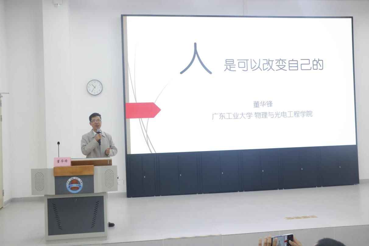报告会上,董华锋以“主动选择”为核心主线,结合自身大学求学、考研读博、海外留学及职场深耕四个关键阶段的人生历程,为同学们逐层剖析“人是可以改变自己的”深刻内涵。他寄语同学们:“人生没有‘标准答案’,但有‘主动选择权’——从‘等安排’到‘敢选择’,打破思维惯性中的被动局限;从‘怕出错’到‘善调整’,把试错转化为成长养分,才能真正把握住自己人生的方向盘,成长为既适配时代需求、又忠于自我热爱的‘掌舵者’。”真挚的话语引发在场学生阵阵共鸣,现场响起热烈掌声。同时,他分享了自己坚守物理学科领域、投身高等教育的职业初心,以及在光电技术研发中助力产业升级的社会责任担当,并时不时地融入自己在校时的学习趣事与成长困惑,让价值观的传递不再是空泛地说教,而是充满了思想的光辉与情感的温润,极大地增强了思想政治教育的感染力和说服力。