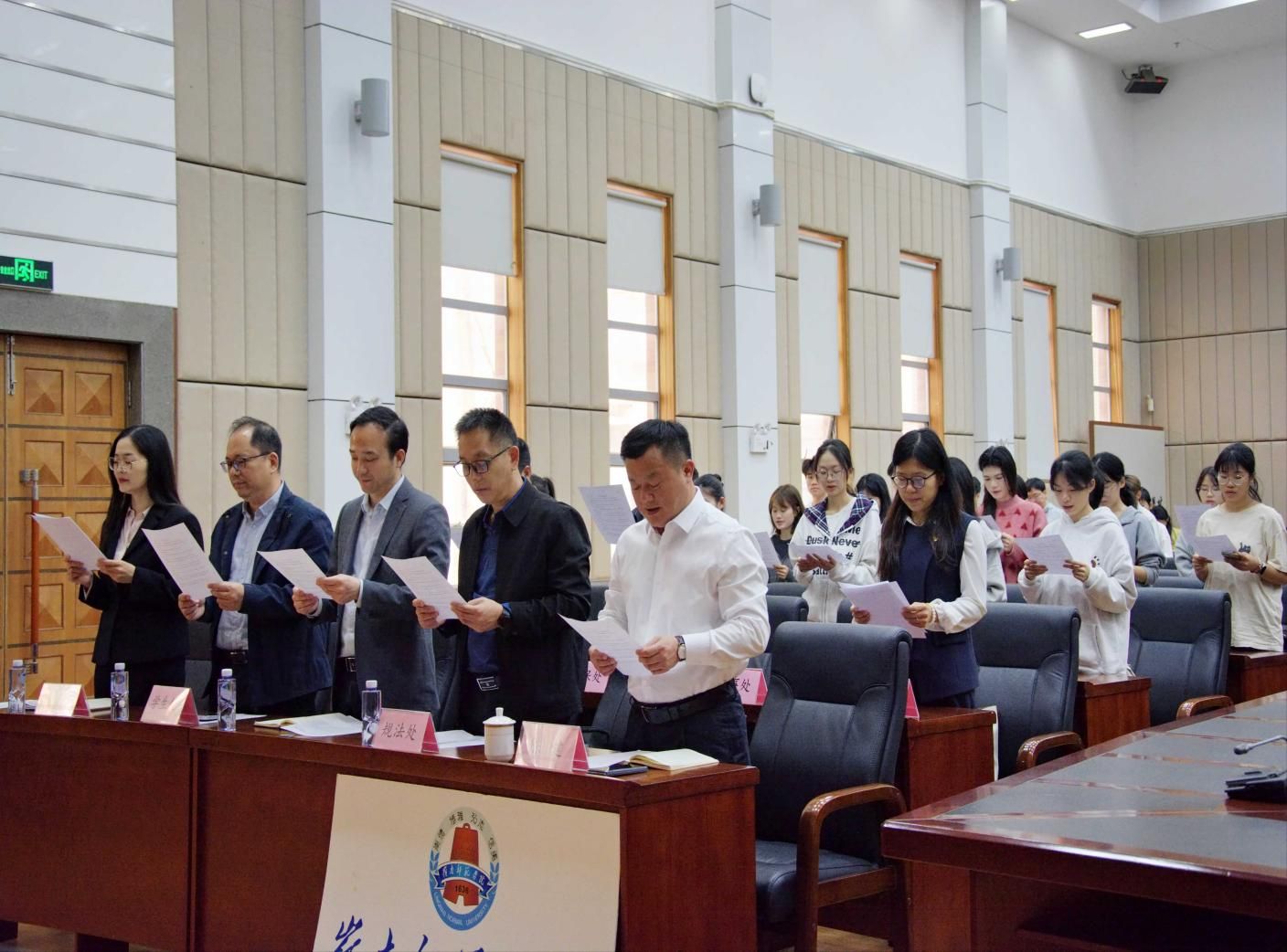 学校党办、校办、宣传部、人事处、学生处、安保处、团委负责人,规法处相关人员,各二级学院师生代表一万余人参加了本次活动。