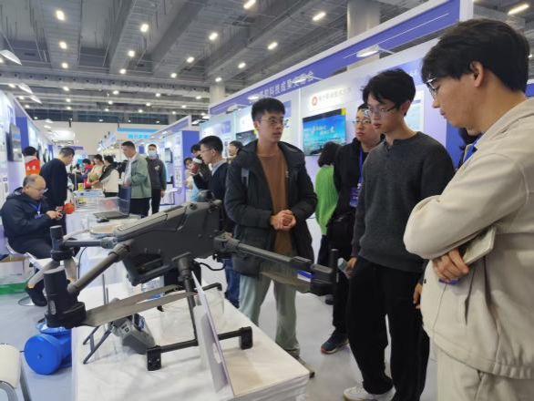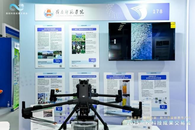 聚焦低空经济、现代农业、新材料、生物医药等战略性新兴产业发展需求,学校精心遴选8项技术成熟度高、市场前景广阔的前沿科技成果参展,集中展现学校在产学研深度融合、服务地方产业升级方面的创新实力。其中,唐宇教授团队的"面向海洋环境监测的智能化无人机全自动采水系统"备受瞩目,该系统实现了从采样到分析的全流程自动化,已具备成熟的产品化条件。此外,刘锴栋教授团队的"热带特色果蔬智能保鲜新型材料"、张卫国教授团队的"绿色高效水代法茶油生产及天然茶碱洗洁产品产业化"、王锂韫教授团队的"南药广藿香高效组培及扩繁技术"、陈小军副教授团队的"智能水质检测仿生机器鱼"、项立副教授团队的"智能植保冷烟机"以及肖水清博士团队的"高性能陶瓷刀具"等项目,均吸引众多参观者驻足交流。