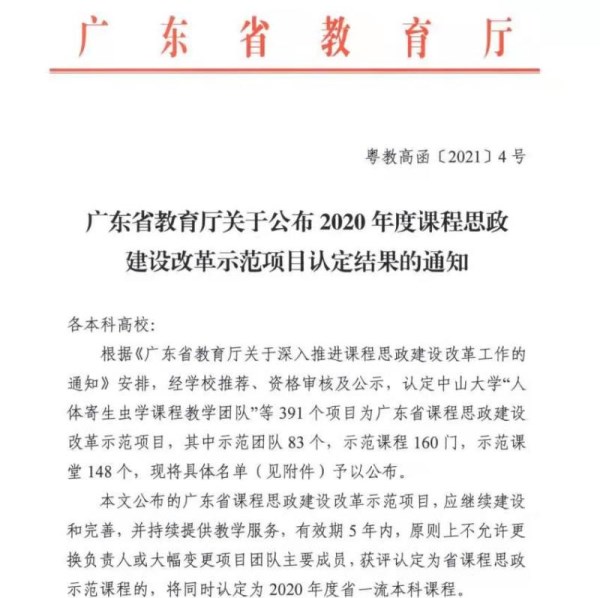 广东省2020年度课程思政建设改革示范项目的认定工作由广东省教育厅组织开展,经各学校推荐、资格审核及公示,共认定391个项目为广东省课程思政建设改革示范项目。