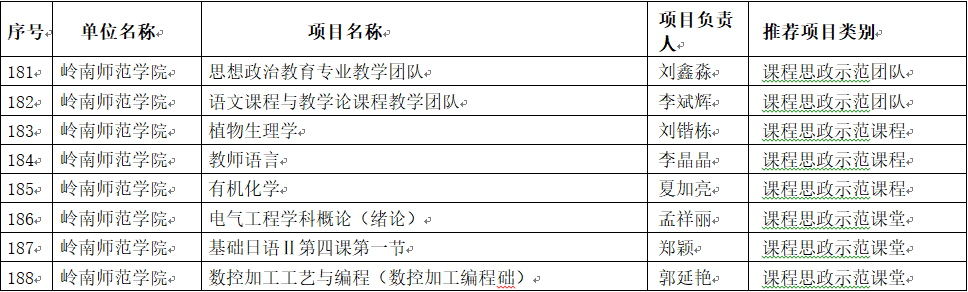 岭师新闻中心讯:近日,广东省教育厅公布2020年度课程思政建设改革示范项目认定结果,我校推荐的8个项目全部获得认定,包括教学团队2项,示范课程3项和示范课堂3项。