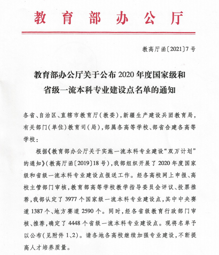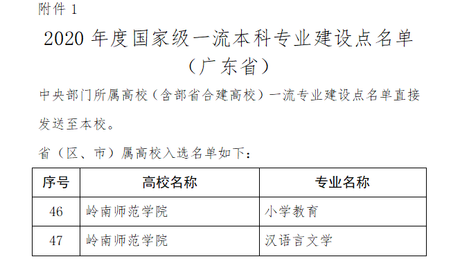 岭师新闻中心讯:近日,教育部公布2020年度国家级和省级一流本科专业建设点名单,我校共有2个专业入选国家级一流本科专业建设点,4个专业入选省级一流本科建设点。