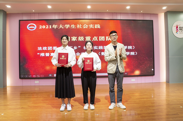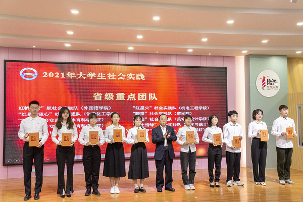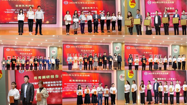 会议表彰了2021年大学生社会实践活动国家级重点团队、省级重点团队和优秀团队、省级优秀个人,以及校级优秀调研报告、十佳个人、优秀指导老师和先进单位。