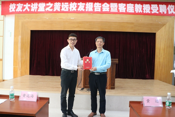 学校党委副书记黄达海为黄远校友颁发客座教授聘书