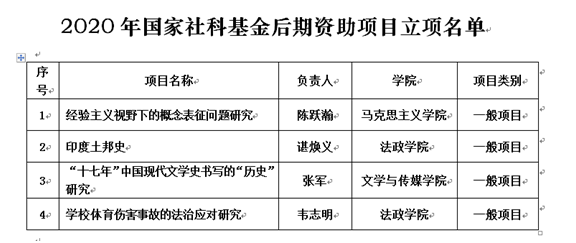 附件:2020年岭南师范学院国家社科基金后期资助项目立项名单