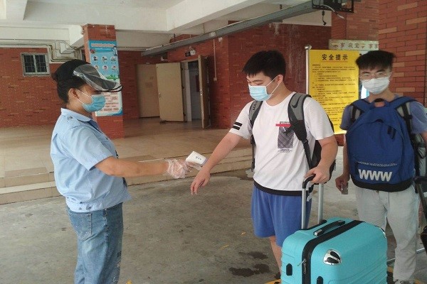 或迎着绵绵细雨、或迎着似火骄阳,学生们从东大门、北一门、南大门陆续返校。校门设置候检区,学生排队入校门,保安核对学生出示的返校二维码,检测、登记体温后,健康的学生可以在接待点等候校车接送其到宿舍区,全程方便快捷。