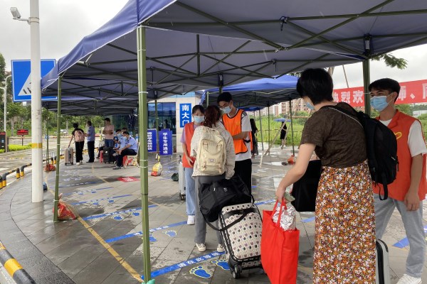 学校的近200名学生志愿者已于25日首批返校,在学校各处检测岗位上值守,为返校的同学提供贴心温暖的服务。“因为太想念学校了,所以当学校招募返校志愿者时第一时间报了名。”志愿者2018级生本班霍靖欣同学表示,能够帮助学校一起做好迎接返校同学的工作,感觉很开心。