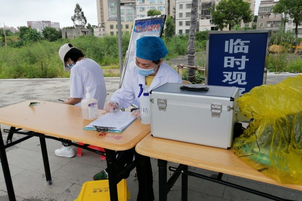 学校每个校门都设置医务点,有校医全天值班。校医陈新雨在南大门值岗,他介绍,如果出现发热人员,校园医务人员需要根据流程快速处理,若发现新冠肺炎疑似病例,将立即启动应急预案。同时医务点也为高温下工作的教职工以及返校后出现身体不适的同学提供急救保障。