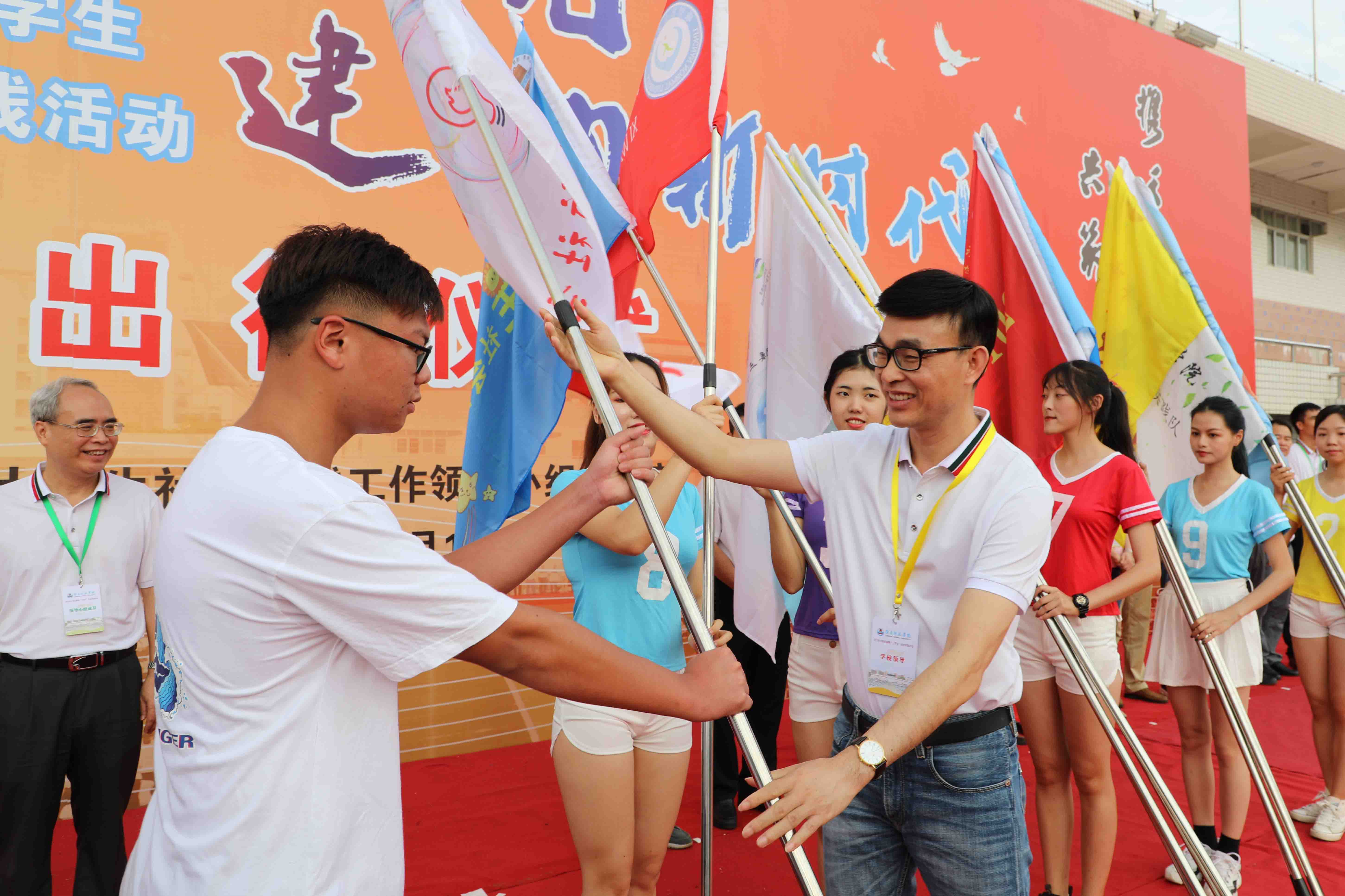 岭师新闻中心讯:晴空万里,百鸽齐飞。7月12日上午,岭南师范学院2019年大学生暑期“三下乡”社会实践活动出征仪式在田径场举行。学校党委副书记黄达海为实践代表队授旗并宣布出征,号召广大青年学子在社会实践中谨记立德树人、德育为先的教育理念,将青春与热血洒向广大农村地区,努力落实好人才培养目标的基础性工作,为我校实现申硕的核心目标做出积极的贡献。
