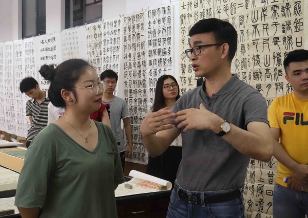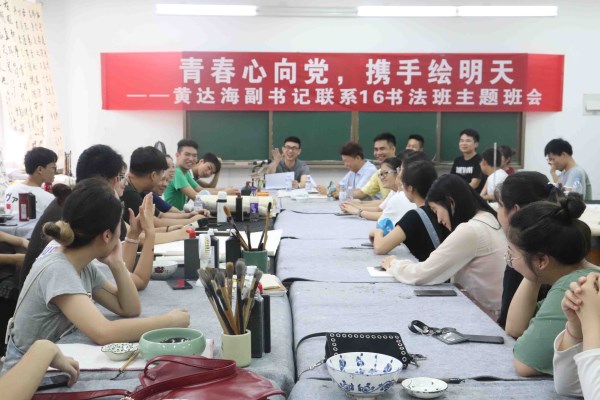 本班班长、班主任先后在主题班会上交流。美术与设计学院部分领导班子成员、书法系主任及2016级书法班全体同学、书法协会代表等参加了本次班会。