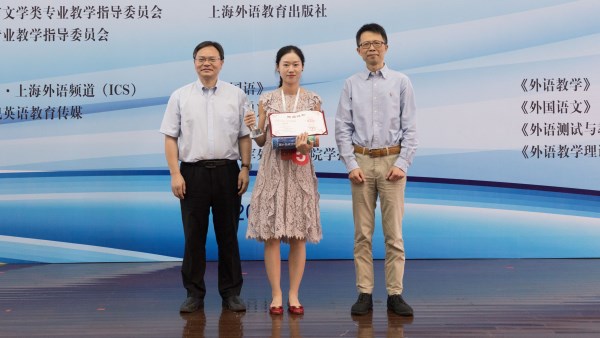 教指委主任刘建达副校长和外教社黄卫副社长为范园老师颁发特等奖