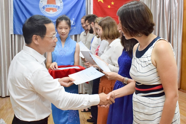 王恒胤为白俄学子颁发结业证书(陈文静摄)