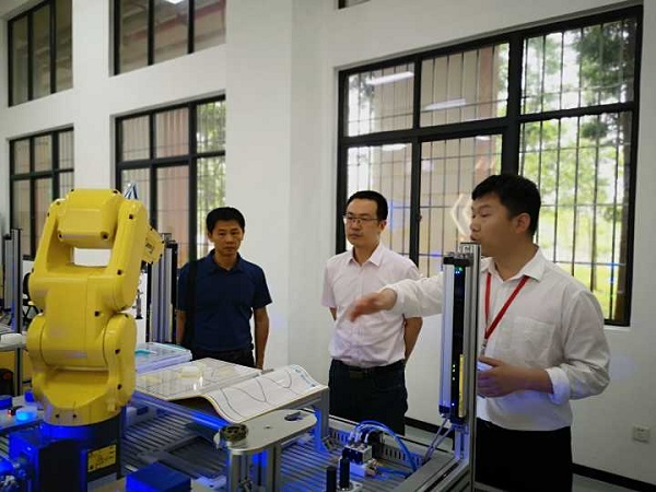 与会期间,我校参会人员参观了厦门华夏学院智能制造实训基地。金义富副校长仔细聆听北京华晟经世技术有限公司的技术人员仔细的讲解,在看到基地funac示教工作站时,金副校长对我校智能制造方向的人才培养方式及实验室建设提出了指导性意见,要求机电工程学院进一步落实智能制造专业群设计、专业课程资源建设等方面工作,鼓励机电工程学院与合作企业进行深度的产教融合,将学院智能制造专业群打造成为学校的一张亮丽的名片。