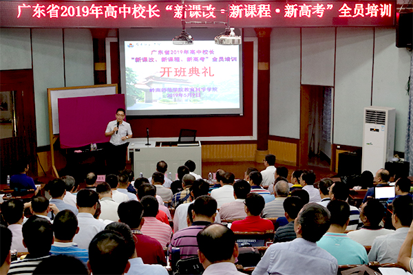 近日,教科院于榕楼一楼培训室举办广东省2019年高中校长“新课改·新课程·新高考”全员培训开班典礼。出席本次开班典礼的有我校副校长苏古发、教科院院长范兆雄、教育系系主任慕彦瑾、培训部副主任兼本次培训班班主任颜胜来及参加培训的全体成员。开班典礼由教科院党委书记郭和才主持。