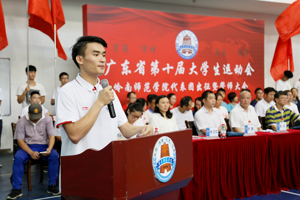 教练员代表陈涛老师和学生运动员代表王文涛分别进行了宣誓发言,决心全力以赴的进行大运会前的最后冲刺,在赛场上珍惜机会,相信自己,安全比赛,赛出学校的精神风貌和体育水平,争创佳绩。