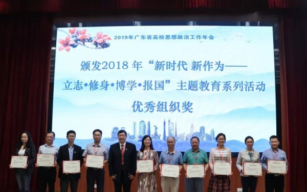 4月19日,广东省教育厅在佛山召开2019年广东高校思想政治工作年会, 颁发了一系列奖项。我校在广东省“新时代 新作为——立志·修身·博学·报国”主题教育活动获得一等奖5项,二等奖6项,三等奖8项,优秀奖3项,连续第八次获得“优秀组织奖”的称号,获奖数量在全省高校中排名第六,在同类院校中名列前茅!此外,商学院学工团队被评为广东省高校学生工作优秀团队,郑晓辉和陈静老师负责的大学生党员体验式思想政治教育新途径项目被评为高校学生事务管理精品项目,吴万老师被授予广东省高校学生工作“红棉奖”,李春霞老师被评为广东省高校学生工作先进个人。本学期开学以来,我校学生工作已累获45项全省、全国奖项,展现了繁花似锦的“新学工”之春。