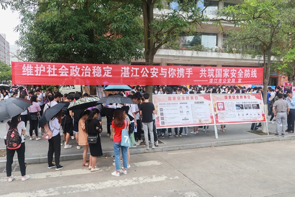 岭师新闻中心讯:根据上级文件精神和苏古发副校长的工作要求,4月15日,为做好国家安全及反邪教工作,我校保卫处、规划与法规处联合湛江市公安局、赤坎区委政法委、赤坎区公安分局、赤坎区八大街道办联合在鸿园饭堂前面开展“4.15”全民国家安全教育日宣传活动,活动主题是“反邪教、促和谐、迎大庆”。